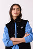It is a slightly boxier fit with snap front closure and a higher collar. This piece is the perfect addition to wear under your ski look or walking around town. The vest comes in Red Bandana Print, Navy Velvet, Black, Powder Blue, Black Velvet. and Signature Leopard.